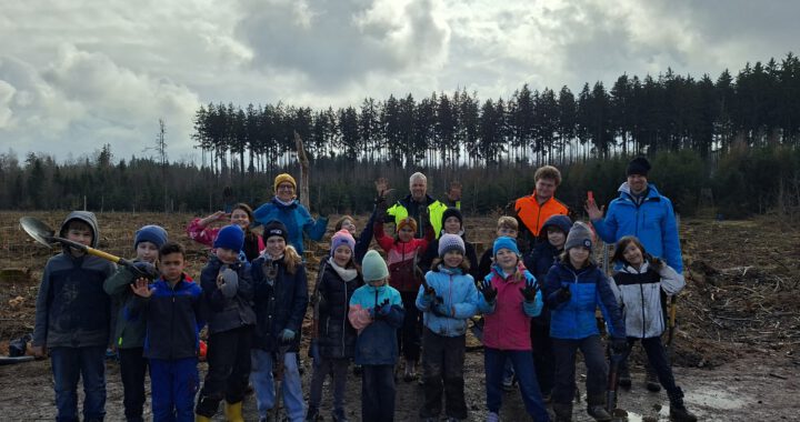 Stolze 60 Bäume pflanzte die Klasse 3a am Donnerstag bei einem Waldstück nahe Mammendorf. Unter der Anleitung von zwei Förstern aus dem Amt für Ernährung, Landwirtschaft und Forsten Fürstenfeldbruck gruben die Kinder fleißig tiefe Löcher mit ihren Spaten und setzten motiviert kleine Setzlinge des Mammutbaumes ein. Stolz blickten alle am Ende auf „ihren“ kleinen Wald und freuen sich darauf, diesen in den nächsten Jahren noch einmal zu besuchen.